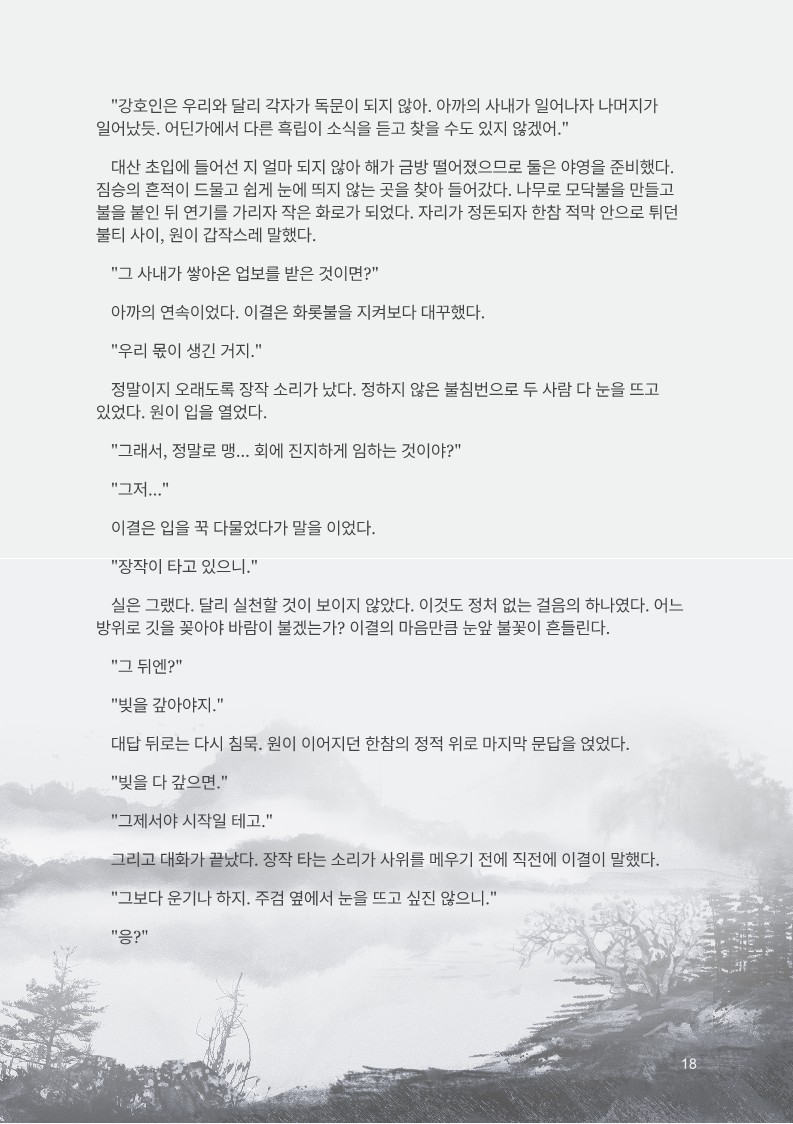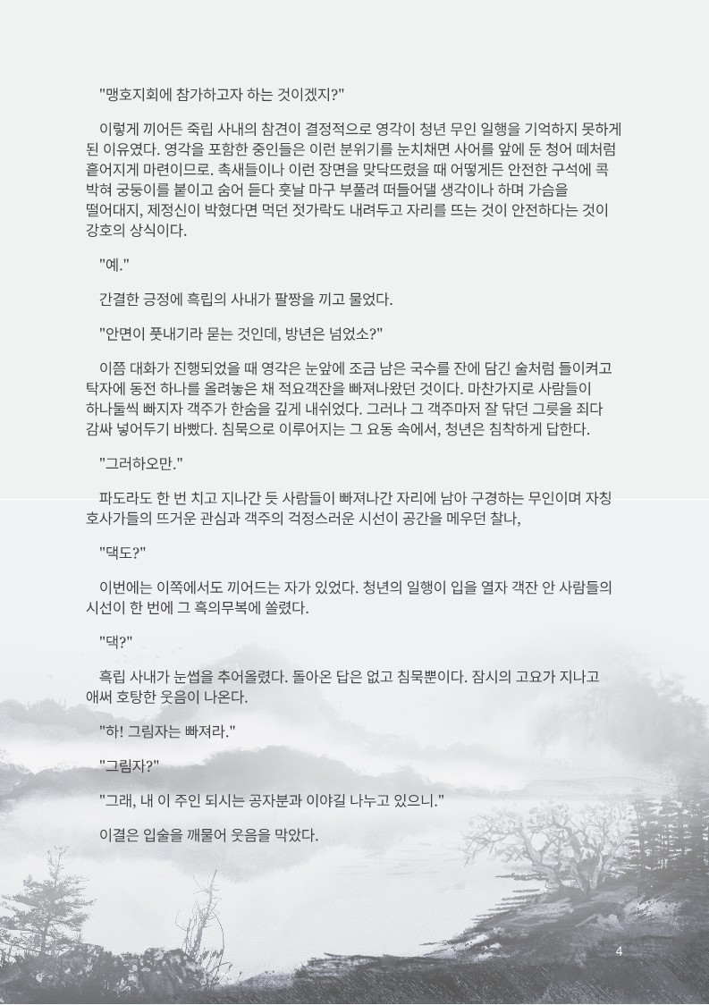 실은 산 아래서부터 만났더랬다. 어디서냐 하면, 화영산 아래 길목 중에서도 목 좋은 터에 자리 잡은 객잔에서였다.
